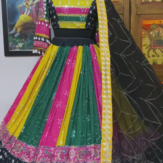 Navratri special Heavy Muslin Cotton Lehenga with Digital Print & Real Mirror Work - Two Variants Available