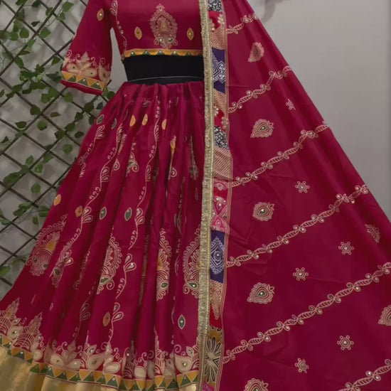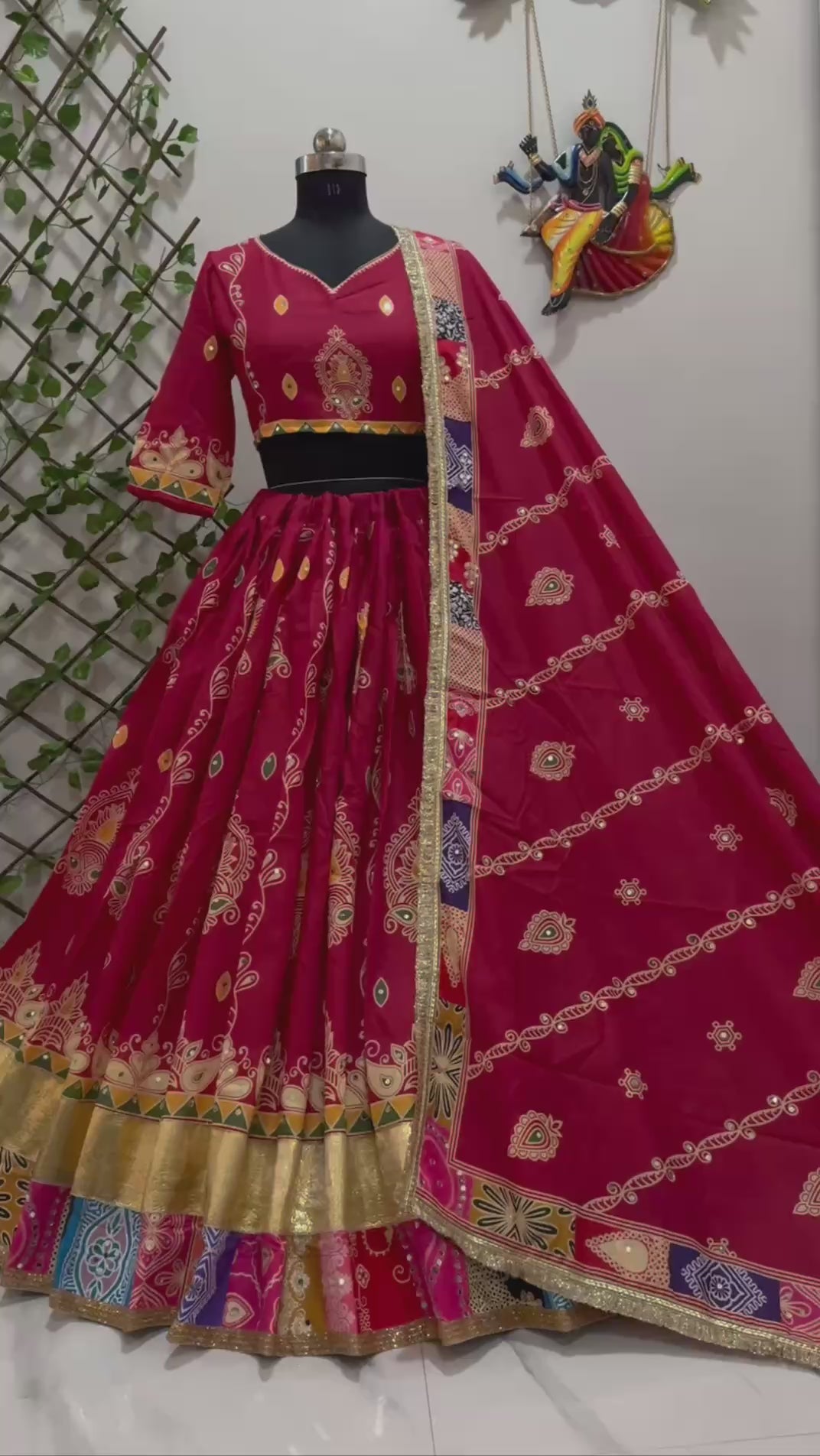 Navratri special Heavy Muslin Cotton Lehenga with Digital Print & Gota Zari Lampi Lace - Alc 103