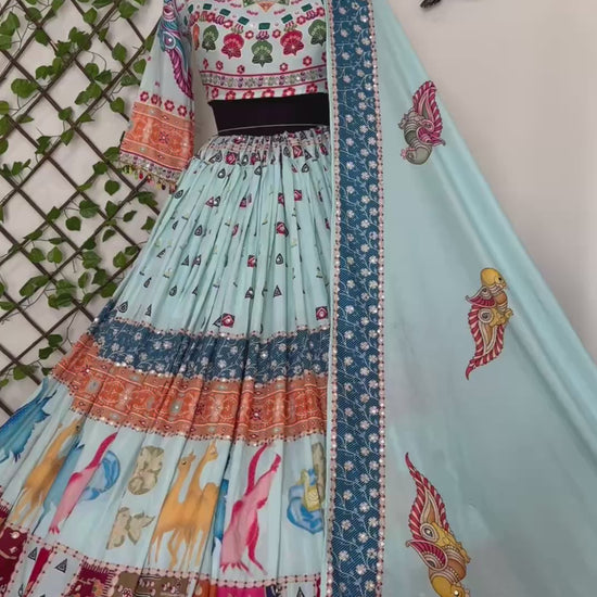 Navratri special Heavy Muslin Cotton Lehenga with Digital Print & Latkan Lace Border - Alc 104