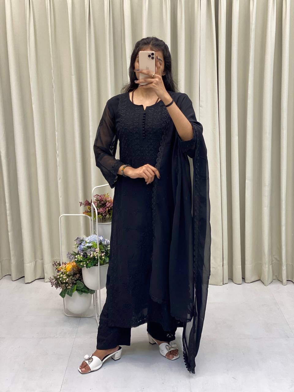 Designer wear exclusive georgette with embroidery suit with dupatta - Ready to dispatch with best quality product guarantee.