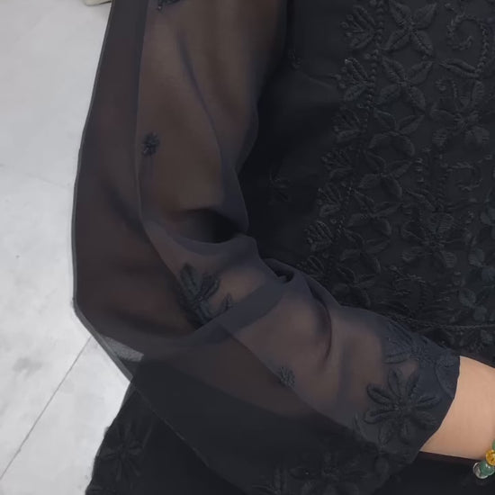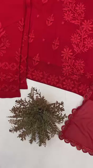 Designer chicken work kurti & pant set with chicken Embroidery work & Dupatta - FFBE-354