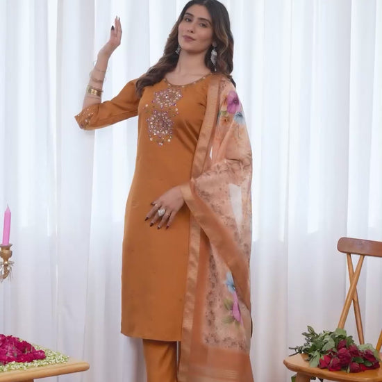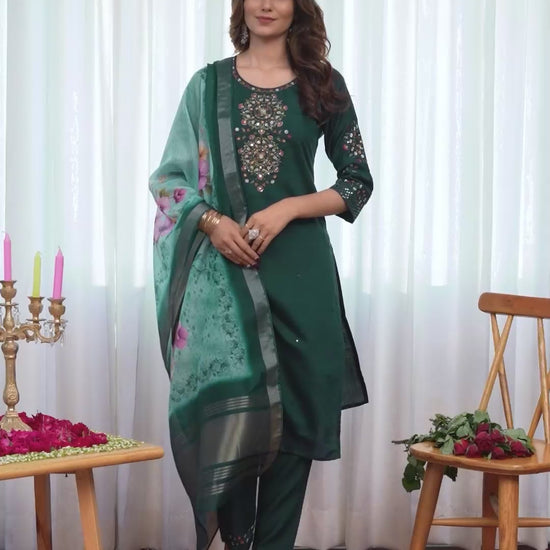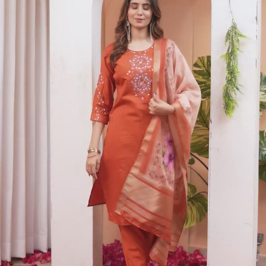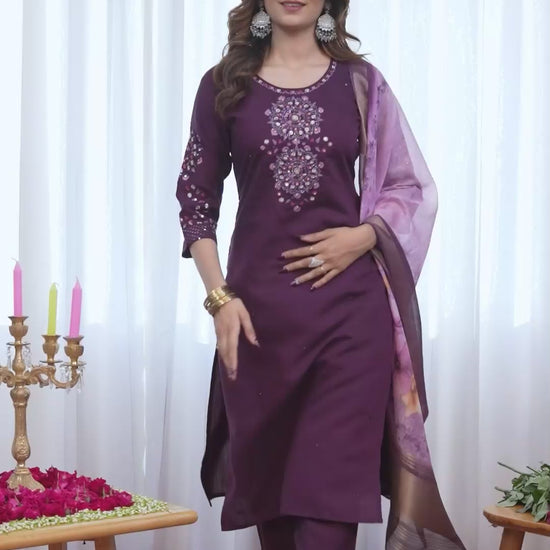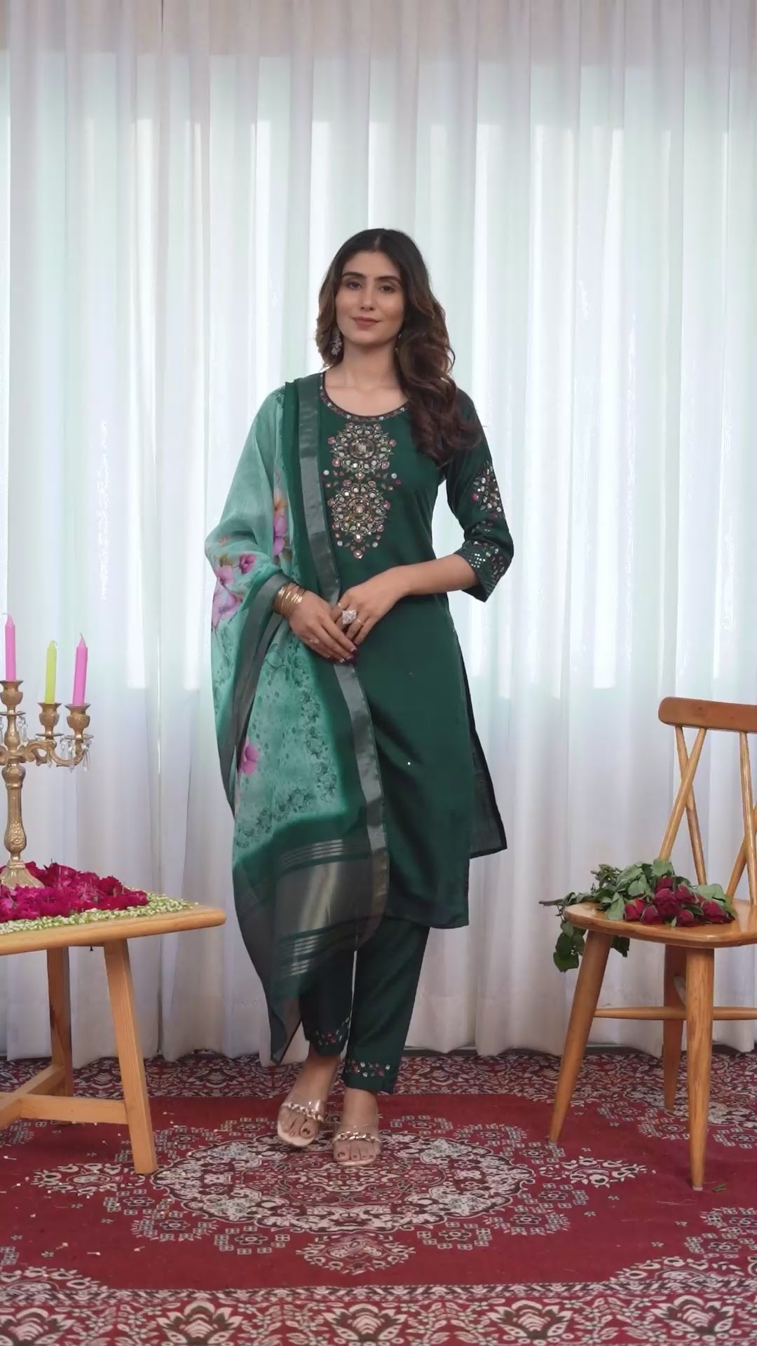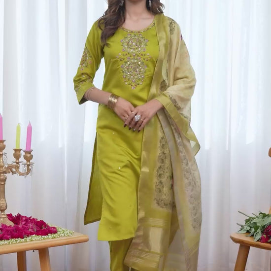 Elegant Straight Kurti Pant Dupatta Set - Viscose Silk with Hand Embroidery