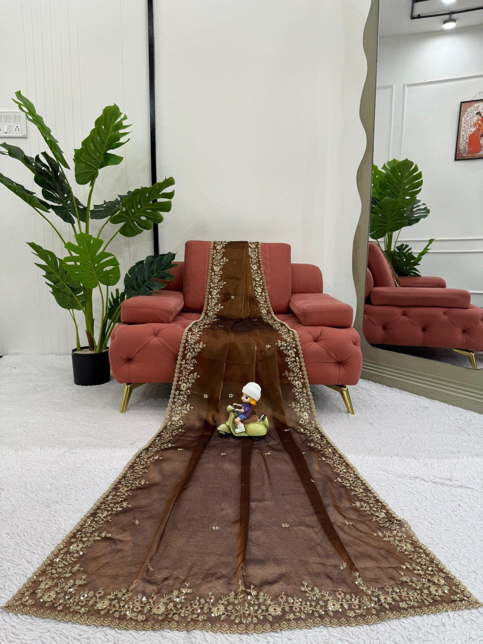 Looking for beautiful designer saree in barbari silk fabric with thread & sequence work - Perfect combination of elegance and tradition.